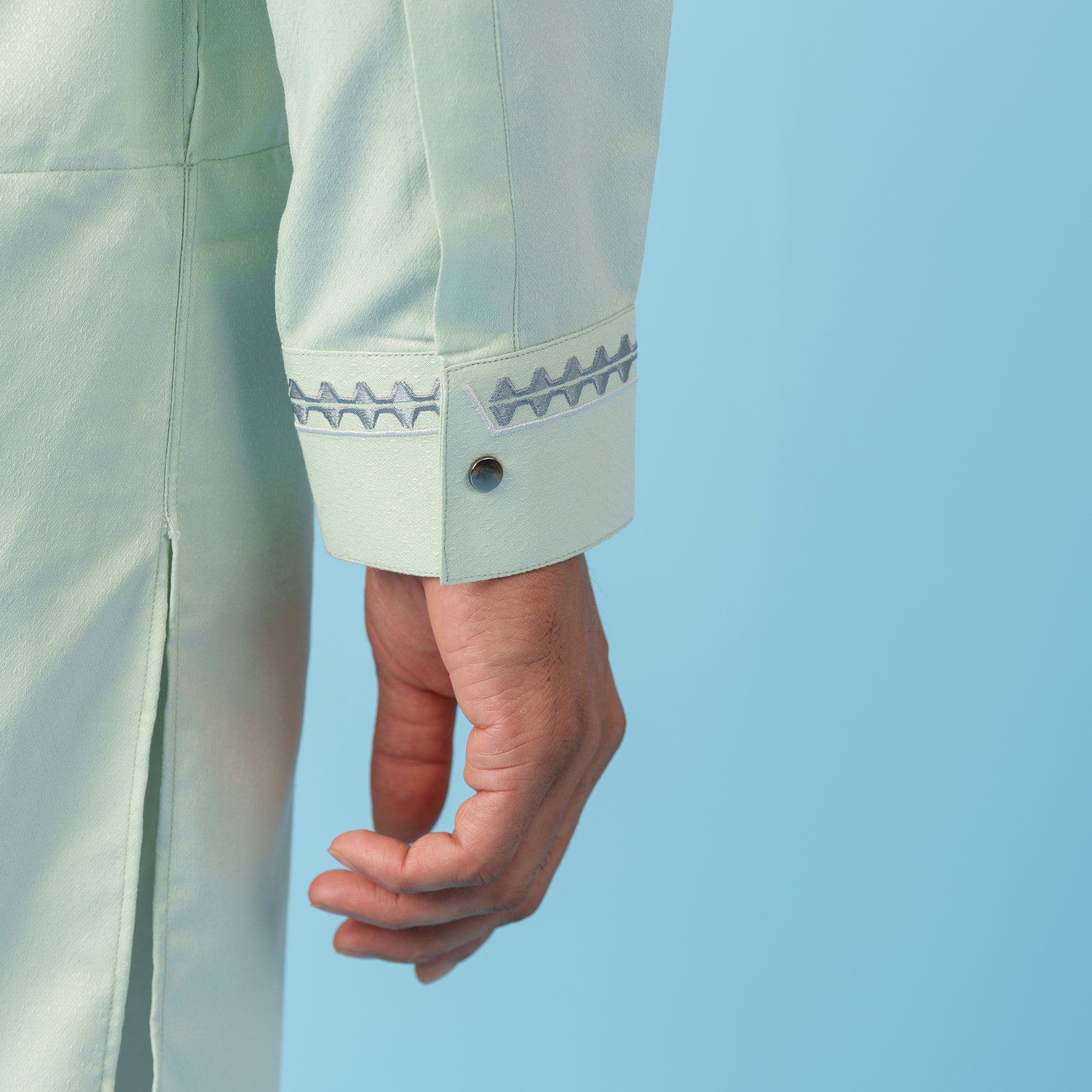 • Embroidered collar, Double placket, back yoke, and Shirt cuffs