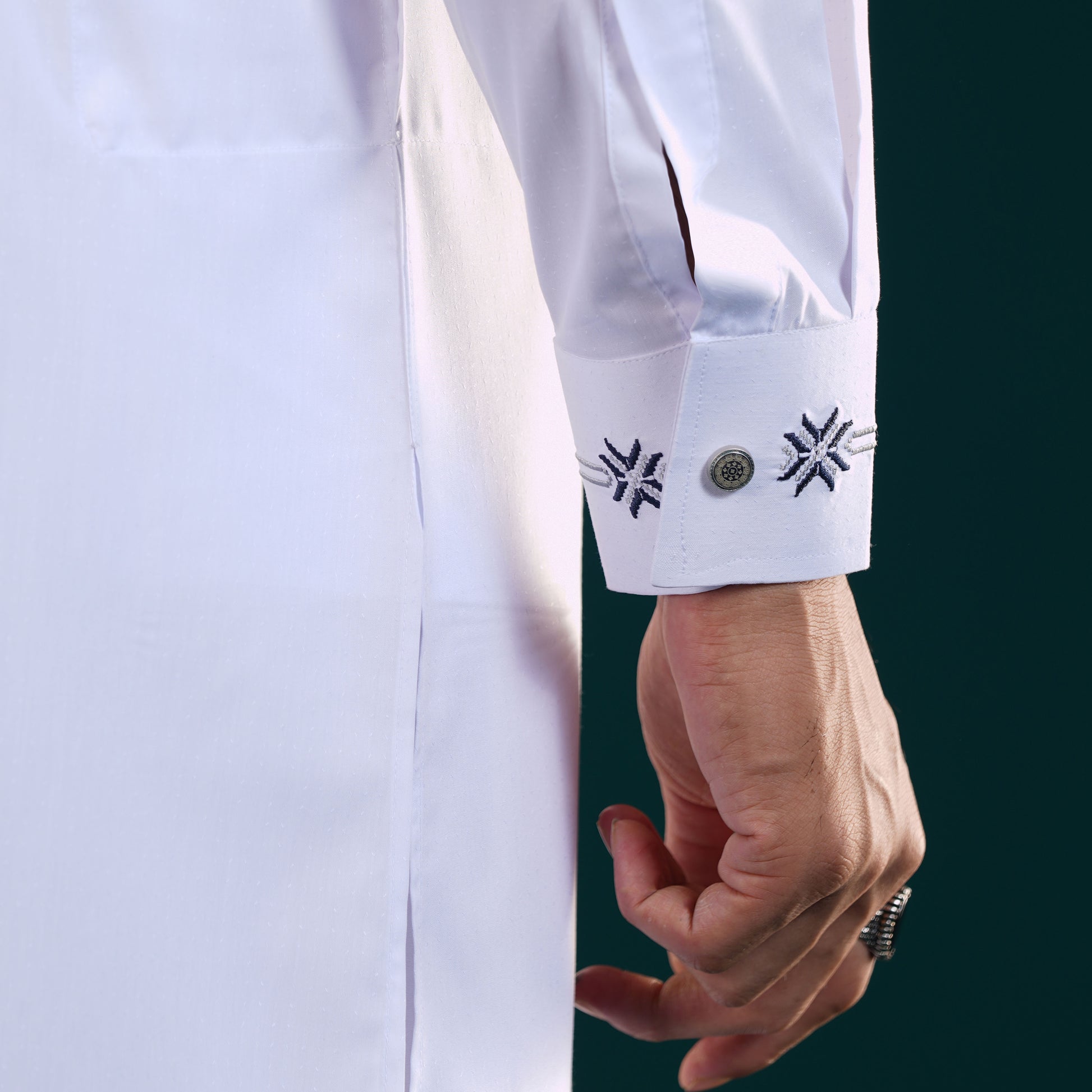 The intricately embroidered collar, double placket, and cuffs add a sophisticated, refined touch, while YAMAAN’s signature buttons complete the polished look. Perfect for festive occasions, formal events, or moments when you want to make a graceful impression.